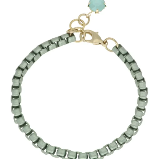Aluminium armband in zomerse kleuren verrijkt met een swarovski steentje.