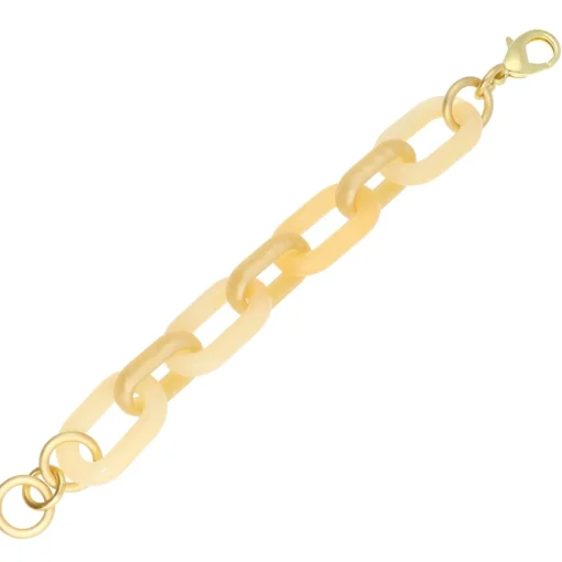Classy en stoer! Dat is deze mooie ivoor schakelarmband. Het dragen van dit sieraad maakt het extra leuk met de bijpassende ketting. Voeg ze snel toe aan je shoppingbag!
