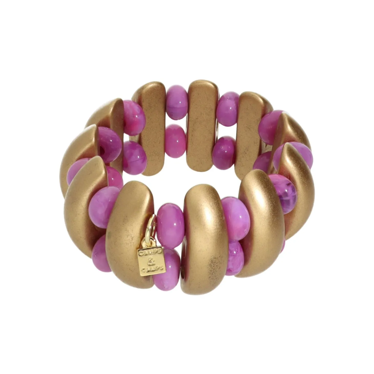 Voeg een touch of colour toe aan jouw outfit met deze grove kralen armband! Door de gouden kralen heeft de armband een luxe uitstraling. Combineer de armband met de andere sieraden uit de zomercollectie voor een complete look!