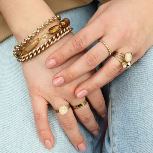 Verdient jouw pols ook een prachtige eyecatcher? Dan zit je met deze armband helemaal goed! De schakelarmband bevat 3 losse armbandjes met schakels en glaskralen waarmee je je outfit helemaal af maakt! Combineer de armband met de andere sieraden uit de zomercollectie voor een complete look!