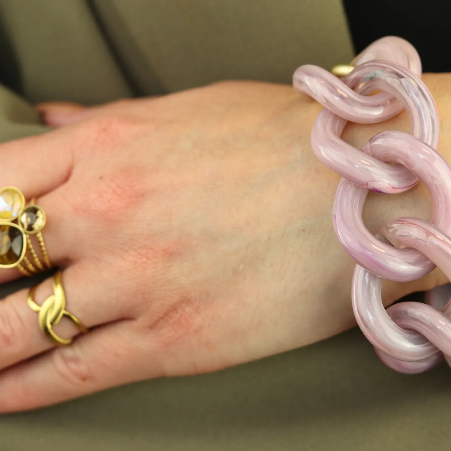 Deze gemarmerde armband is gemaakt van kunststof, waardoor hij lekker licht is om te dragen. Én je kunt er eindeloos mee combineren. Draag hem enkel, of stapel je schakelarmband! Draag er een aluminium schakel bij, of een grote bronzen of antiek zilveren schakel, of combineer het met een essential. Met deze armbanden verander je je garderobe in oogwenk.
